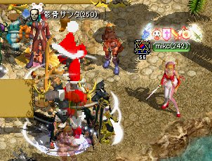 サンタさんにはダメージが1しか与えられないので、mikcではなく、ファミっこ頼みのテイマーちゃんで参戦ですv