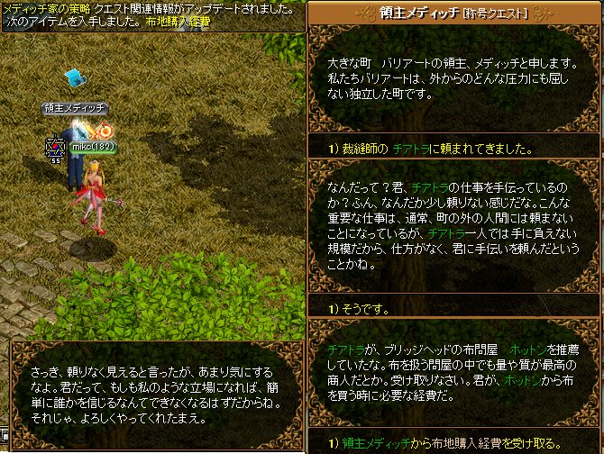 クエストのタイトルと、メディチさんのやってることがかなり違うので?な感じですが、ともかく、お金をもらいに行きます。