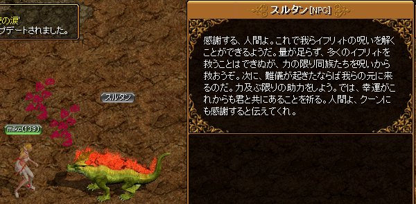 サラマンダーにはぼわっとされましたが、イフリイトには遭遇することもなく、するたんの元へ。