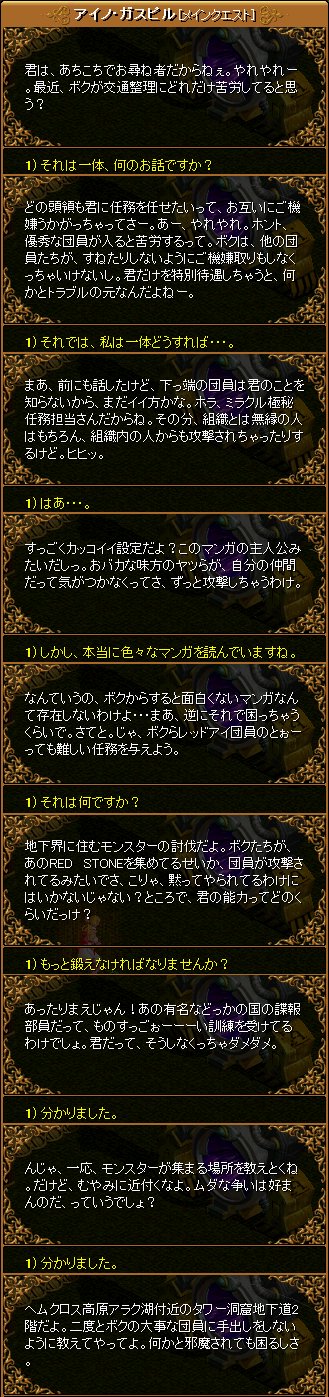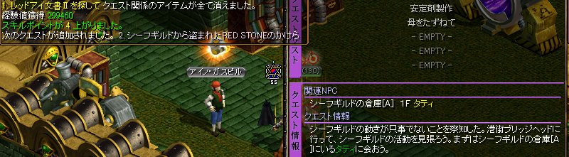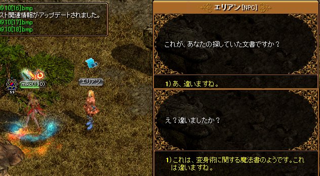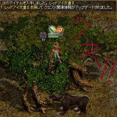 クマーにさんざん追い回され、クエスト欄を確認するより巻物でハノブへ逃げ帰りました><。。。