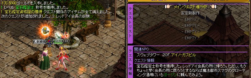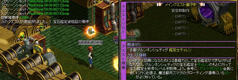 アイノさんが教えてくれたワープ装置が気になるけど、ここは帰還の石を使って、スマグ→ギルドホール→古都、へ行きます!