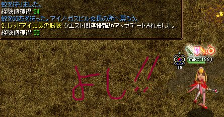 ぶんぶん言う蚊の嫌な音に耐えながら、60匹を狩り終わり!