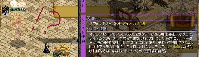 この前の挑戦では、17Fに登って地図を確認してたら、傭兵さんに殺されてしまいました><。