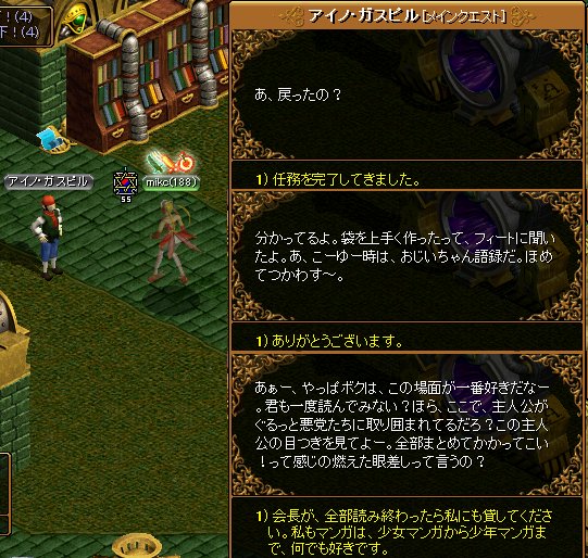 途中でうさ変身ダッシュしたり、今はもうレベルがずいぶんと下になってしまったこわい敵を倒したりしながら、スマグ→ゴージンさん、で、会長へv