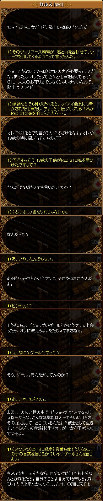 カルスくんがレッドストーンをゲットしたかは置いておいて、ゲールさんを知ってること自体は嘘じゃないっぽいですね。。。