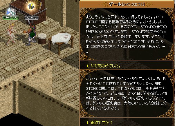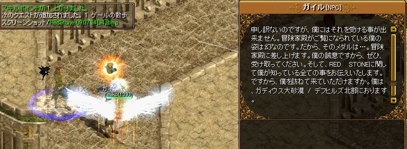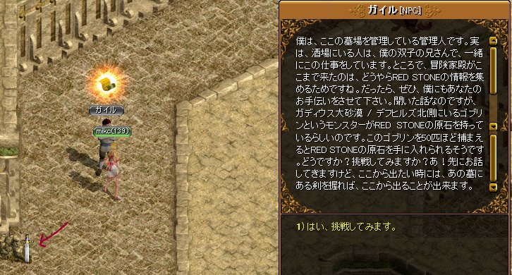 剣士さんにお礼を言い、帰還の石でアリアンへ戻ります。