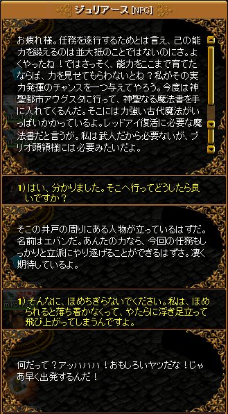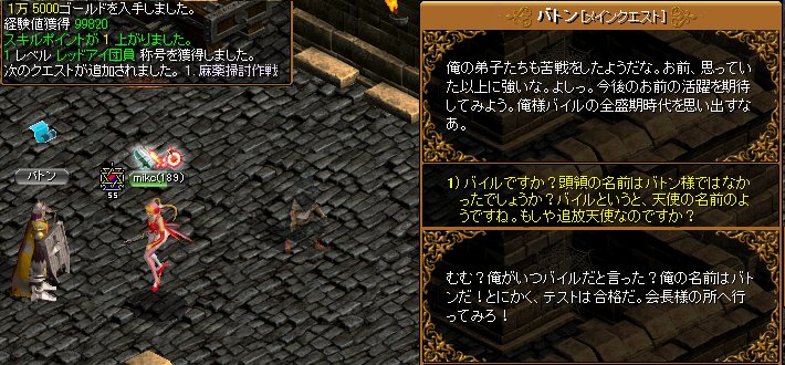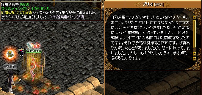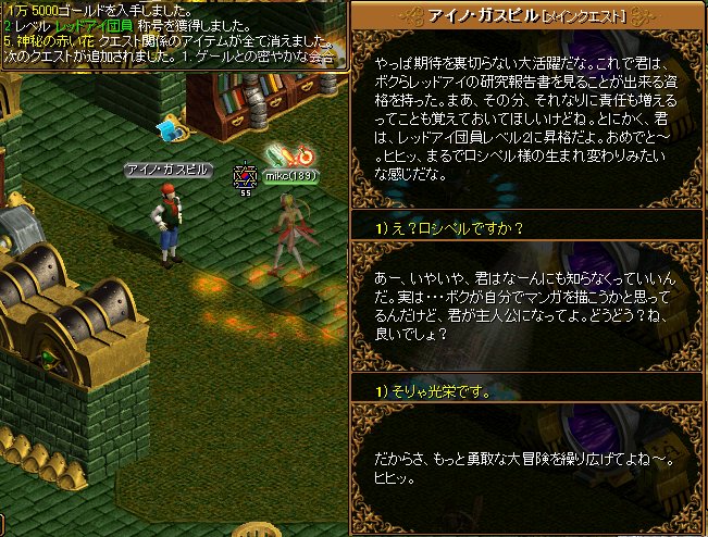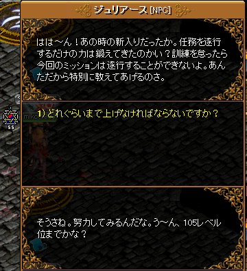 mikcのレベルは105を越えているので、そのまま話しかけると新たなミッションです!