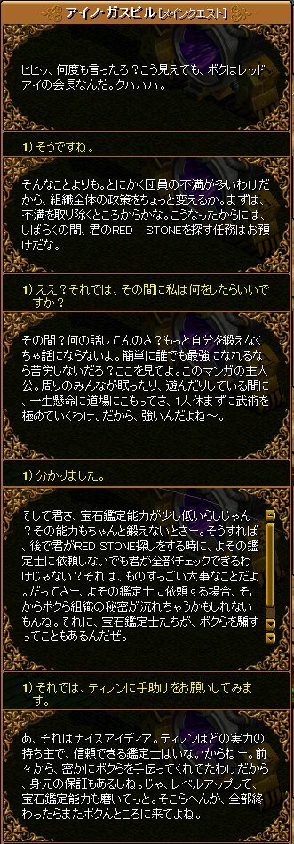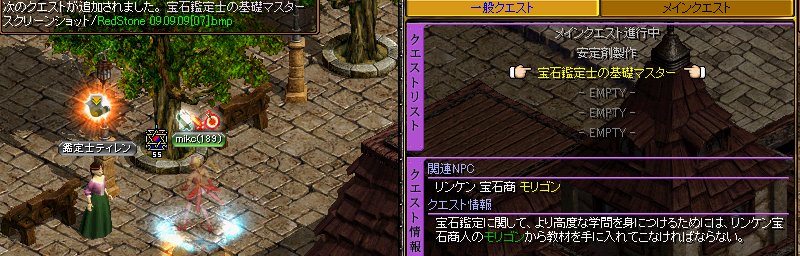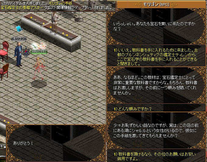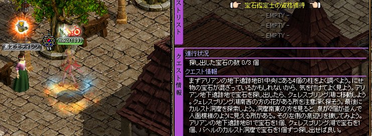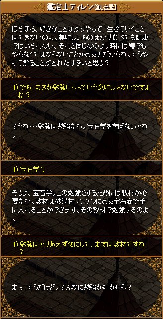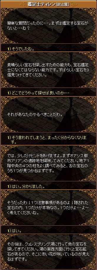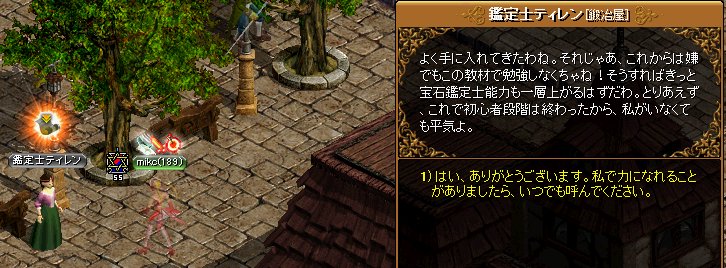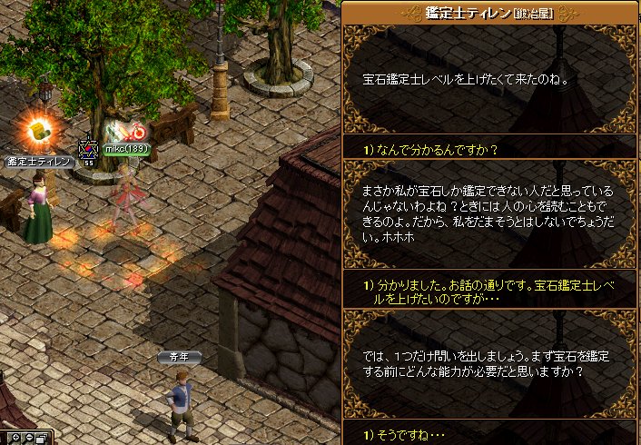 一度ティレンさんに話しかけると、宝石鑑定の2がいただけるようです。