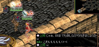 それからふたりでB5に降りて、mikcは入り口付近、上岡さんは敵がいっぱい湧く場所で狩りをしてましたv