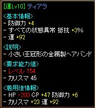 そしてティアラ装備に合わせて運+90↑に出来るよう、鎖輪のベルト狙いで+90↑を探してみようと思ってます!