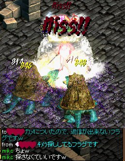 ただ、レベルが上のカメさんなので、攻撃ミスがちらほらと。。。