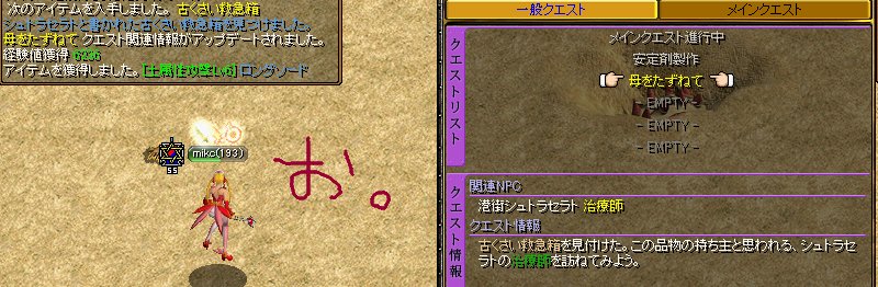 またまたちっちゃく畳んだメインクエは、アリアン隣での、レッドストーンのかけら探しから!