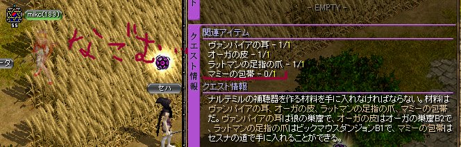 メインクエストの途中、ダメルへ行くことになり、mikcは思い出しました。