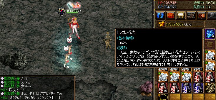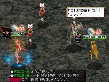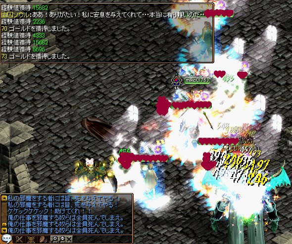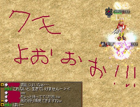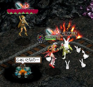 ランサーさんがすごーく優しい方で、mikcが攻撃してるのに気付くと、大きいのを放って倒してくれるのね。