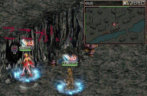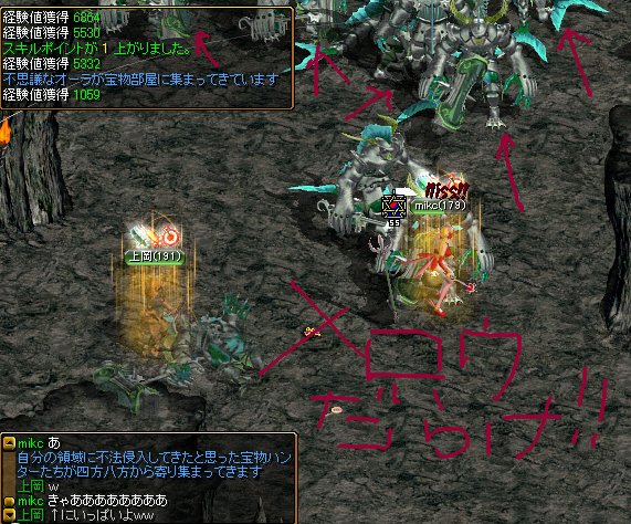 強い敵を倒しながら進むと、(ターゲットは99%上岡さんに行くので、mikcは楽々なことこの上もありません;;)ここに罠があるよと教えていただきました。