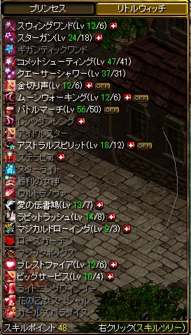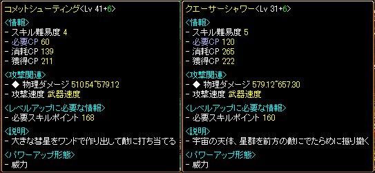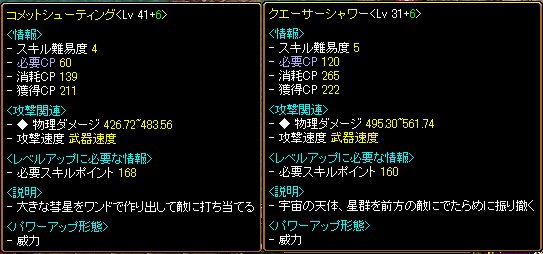スキル内訳は、修行中+名手、から、大スター、になりました。