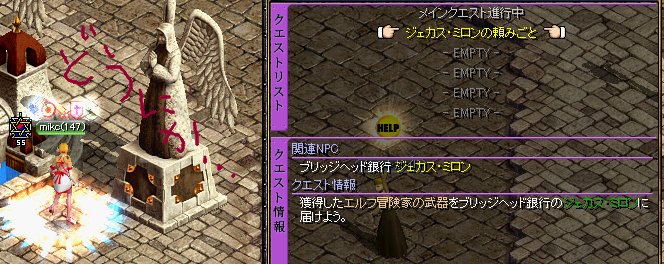 もたもたするmikcに、PTに入ってクリアしますかとの、ありがたすぎるお誘いもありましたが、答えている途中の2・3エルフ目で無事にアップ!