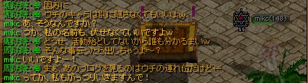 そして、お礼を思いっきりギルドチャットに誤爆するmikc。