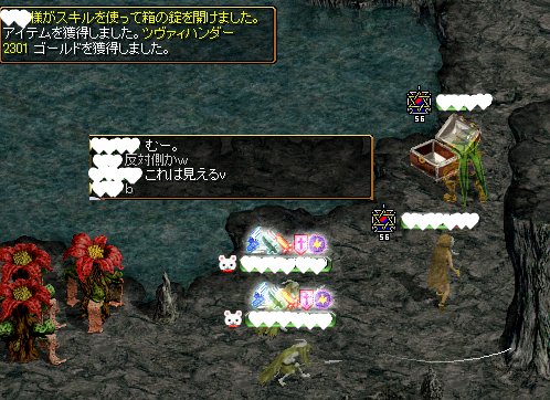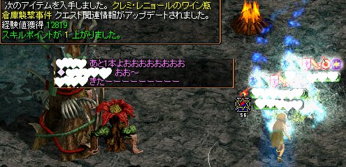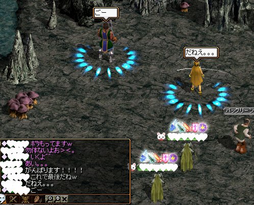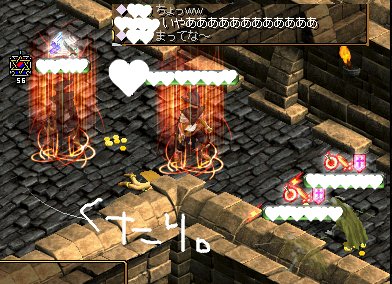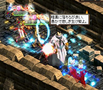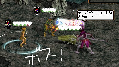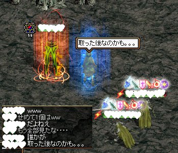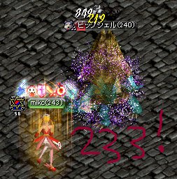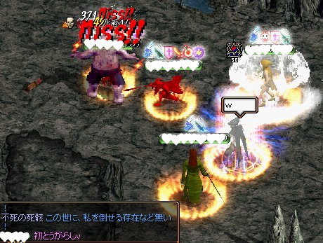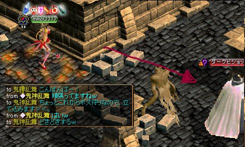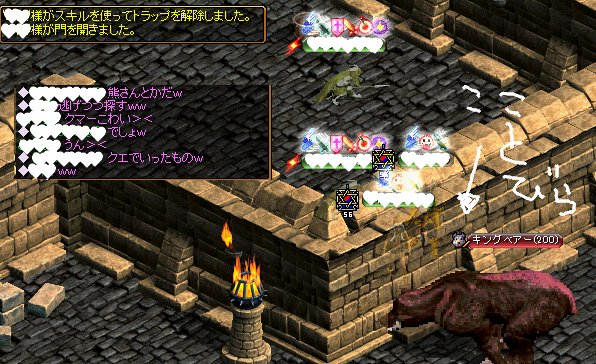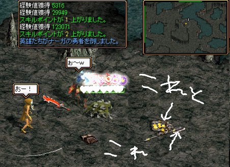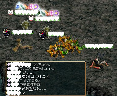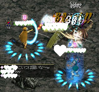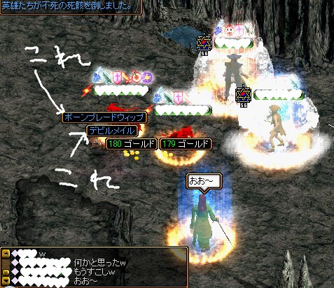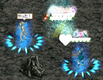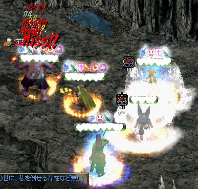 これは、河口ダンジョンB2でPTしてたら、B3へ宝探しへ行った久石さんに、ボスが湧いたと教えていただいて、鬼神さんと突撃したところですv
