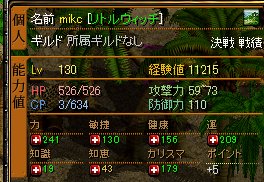 ここまで考えても埒が明かないので、とりあえず、レベルを130にしてみた。
