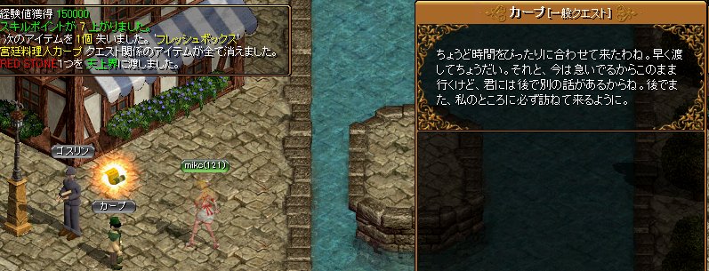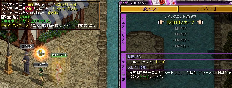 料理人クエストが大丈夫なのかを見に行くのと、駄目でもシュトラセトへ行って速度の石を買い込んで、空いた銀行のスペースに詰め込む為です。