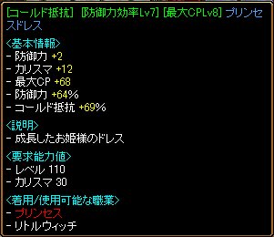 ドレスをピューリに変えると、CPが足りない…。